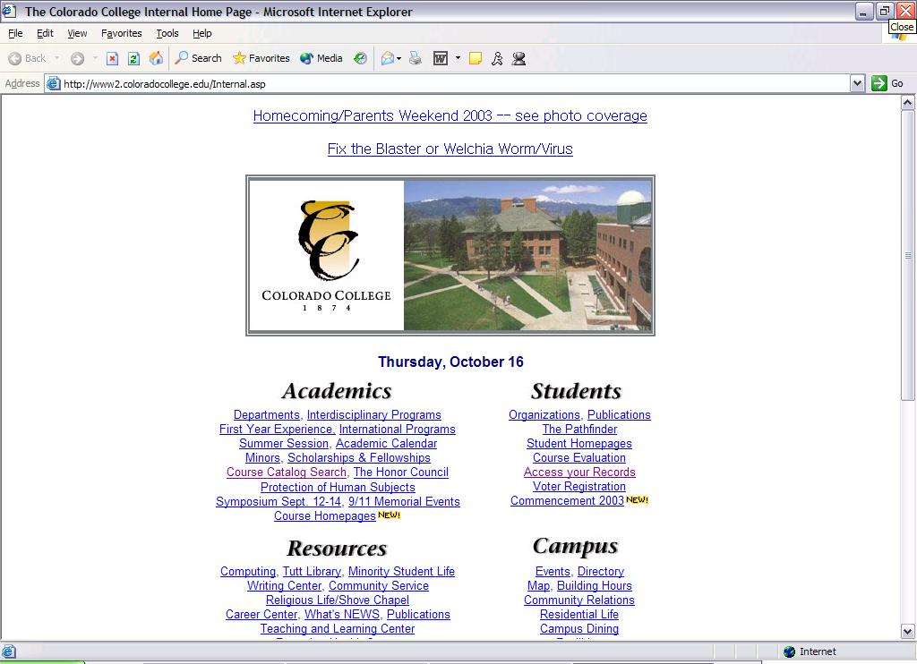College's homepage. The homepage has numerous links