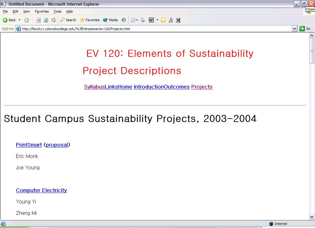class final projects page. The webpage contains links