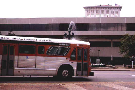 This water fountain at Court Square is topped by a statue of Hebe, the Goddess of Youth. The state capitol, at the other end of Dexter Avenue, is visible to the left of the fountain. The Confederate telegram that ordered the firing on Fort Sumter in South Carolina, the event that started the Civil War, was sent from Court Square. Rosa Park's bus filled with passengers. When a white man demanded to have her seat, as the law allowed, Rosa Parks refused to give up her seat. |
