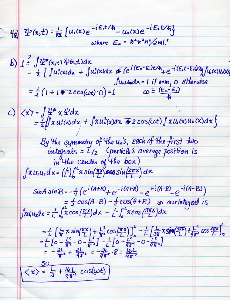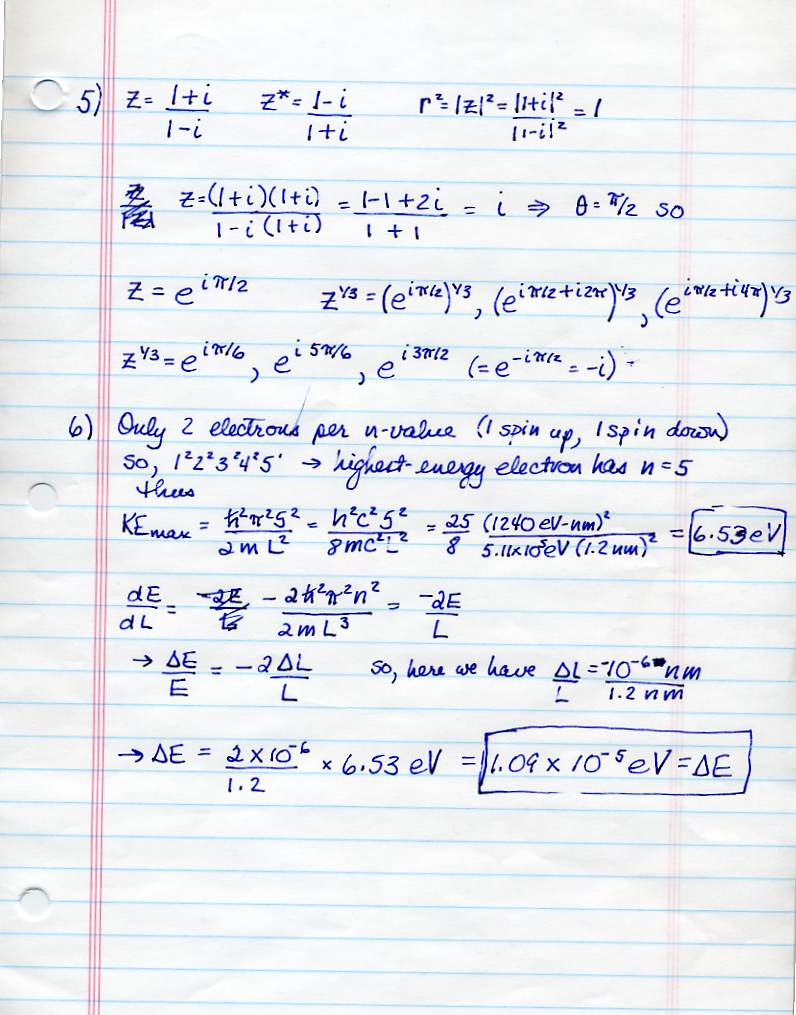 Solutions for Test 3: Complete, no doubt, with errors: Problem 1&2, pr 3, pr 4, pr 5, and pr 6. Yep, in problem 1, I omitted the (L^2)/4 from the calculation of delta-x.