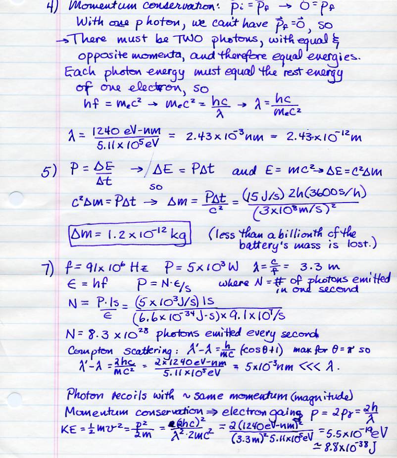 On problem 4, assume the electron and the positron are initially pretty much at rest.